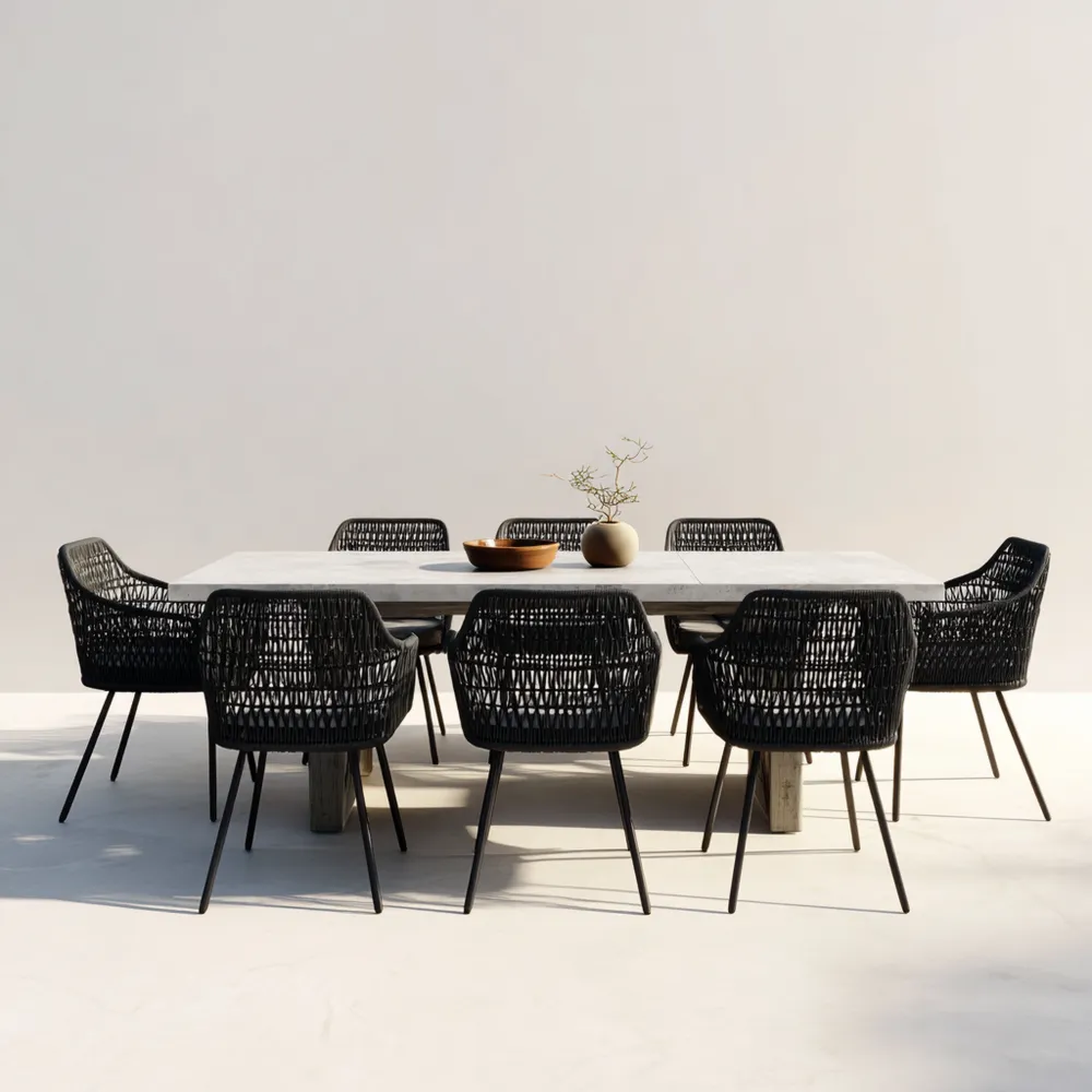 Garten-Esstisch-Set Teakholz 4-Sitzer 150x90x75 cm – Schwarz-Weiß Muster – Zeitgenössisches Design