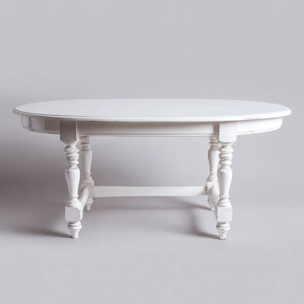 Material und VerarbeitungGefertigt aus hochwertigem Holz, verleiht die weiße Lackierung dem Tisch einen zeitlosen und dennoch modernen Look. Die kunstvoll gedrechselten Beine unterstreichen das klassische Design.