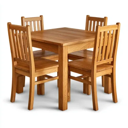 Dieses Esszimmer-Set aus massivem Naturholz ist die perfekte Ergänzung für Ihr Zuhause. Sein klassisches Design verleiht jedem Raum eine zeitlose Eleganz.