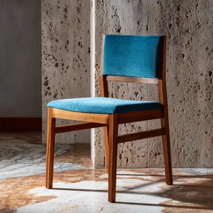 Esszimmerstuhl Massivholz-Samt 45x50x85 cm - Blau - Retro Design