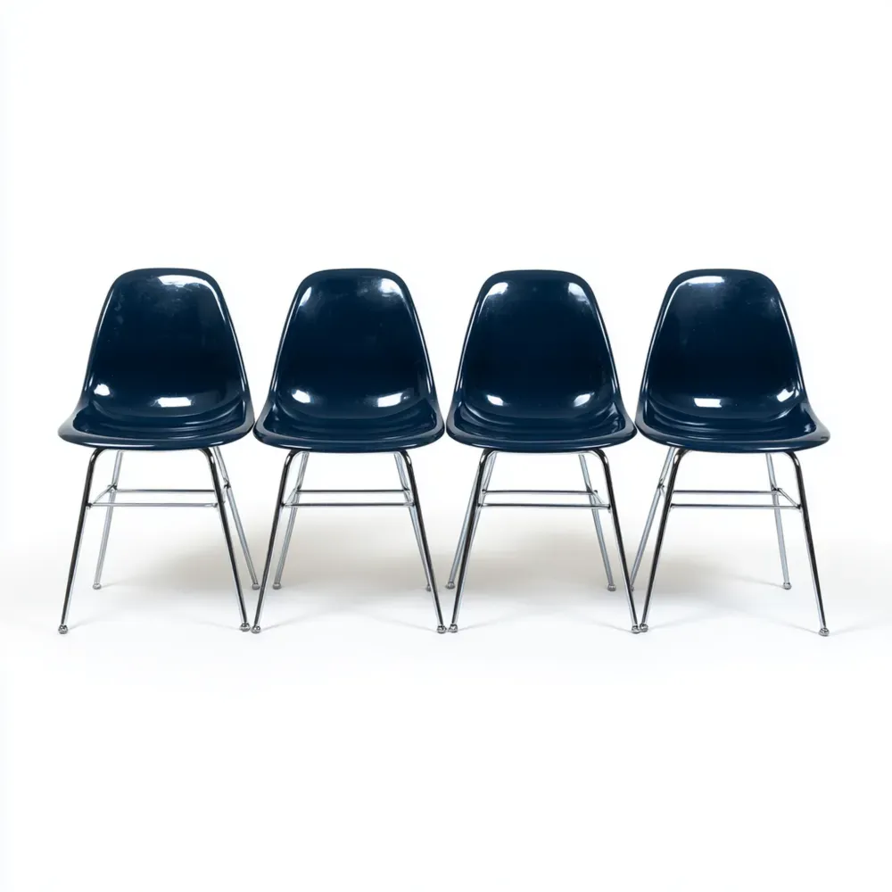 Material und VerarbeitungDie Stühle bestehen aus hochwertigem Kunststoff in Dunkelblau und sind mit einem stabilen Metallrahmen ausgestattet, der für Langlebigkeit sorgt.