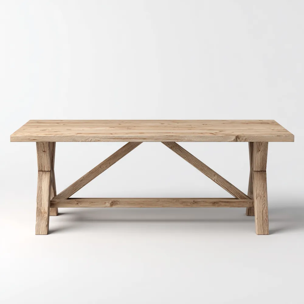 Material und VerarbeitungDer Tisch besteht aus hochwertigem Massivholz in einem natürlichen Farbton, das für Langlebigkeit und Widerstandsfähigkeit bekannt ist. Die Oberfläche ist fein geschliffen und sorgfältig versiegelt, um eine lange Lebensdauer zu gewährleisten.